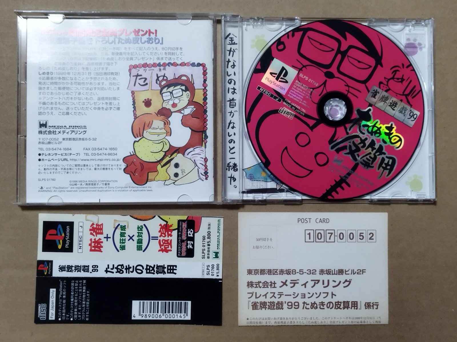 雀牌遊戯'99 たぬきの皮算用 帯葉書箱説有 PS1プレイステーション【9N8】