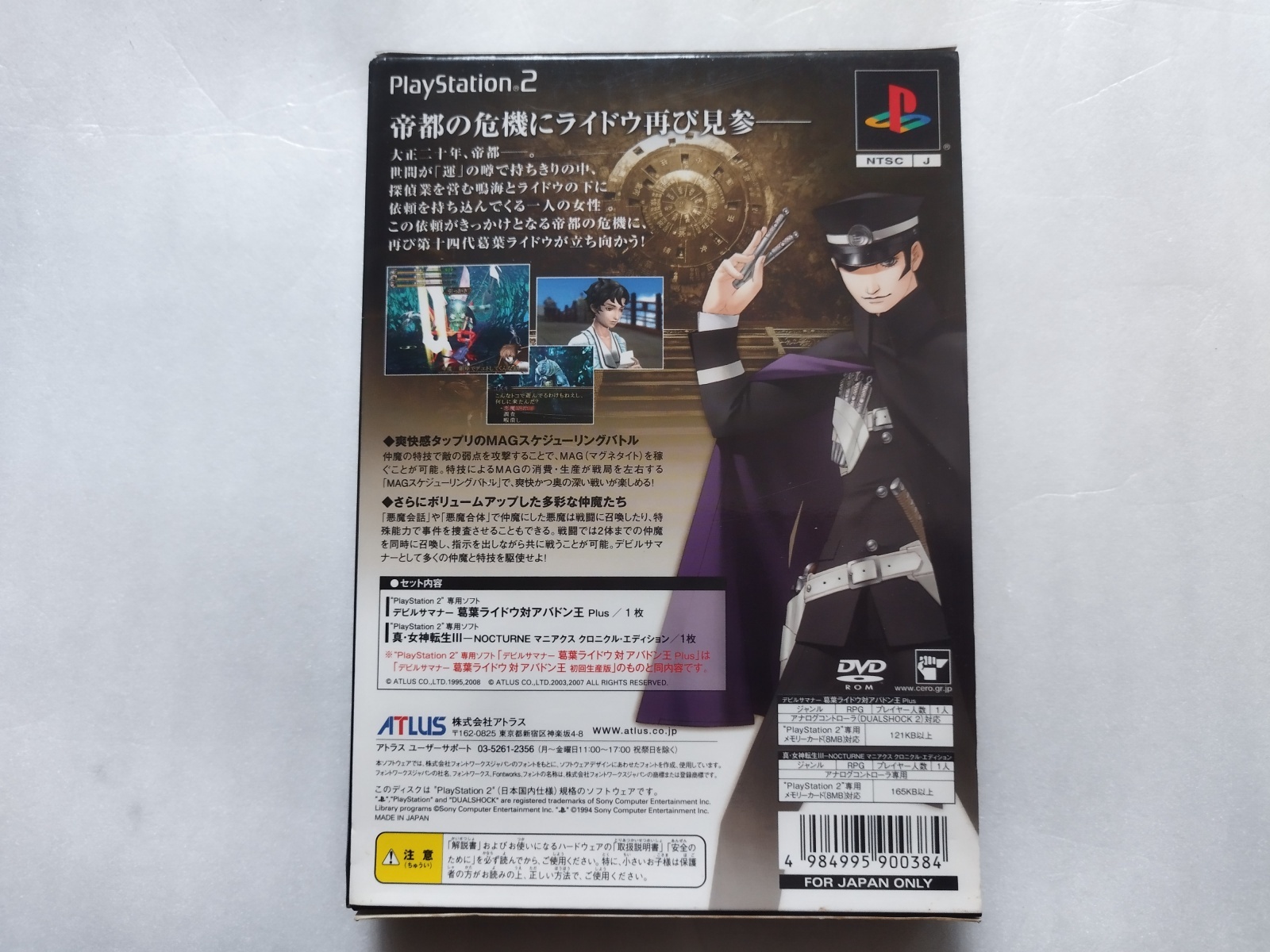 『デビルサマナー 葛葉ライドウ 対 アバドン王 Plus』は、2008年にアトラスから発売されたPlayStation 2用の限定版パッケージです。本作はゲーム本編に加え、ファンからの要望が多かった名作の移植版が同梱されていることで非常に高い人気を誇ります。