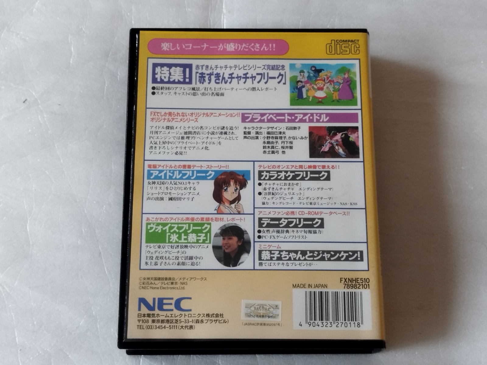 PC-FX用のディスクマガジン『アニメフリークFX Vol.1』(創刊号)は、1995年8月12日にNECホームエレクトロニクスから発売されました