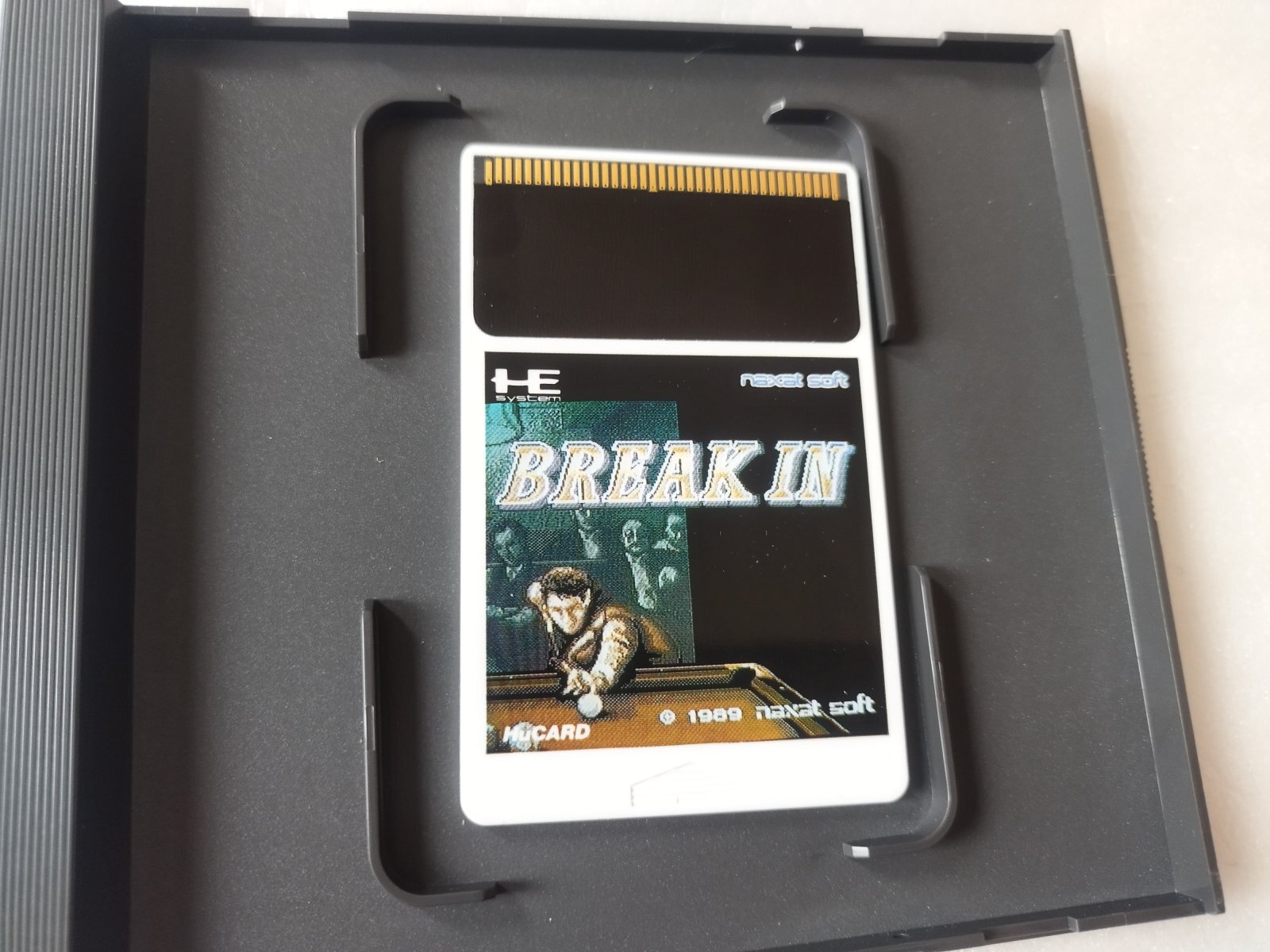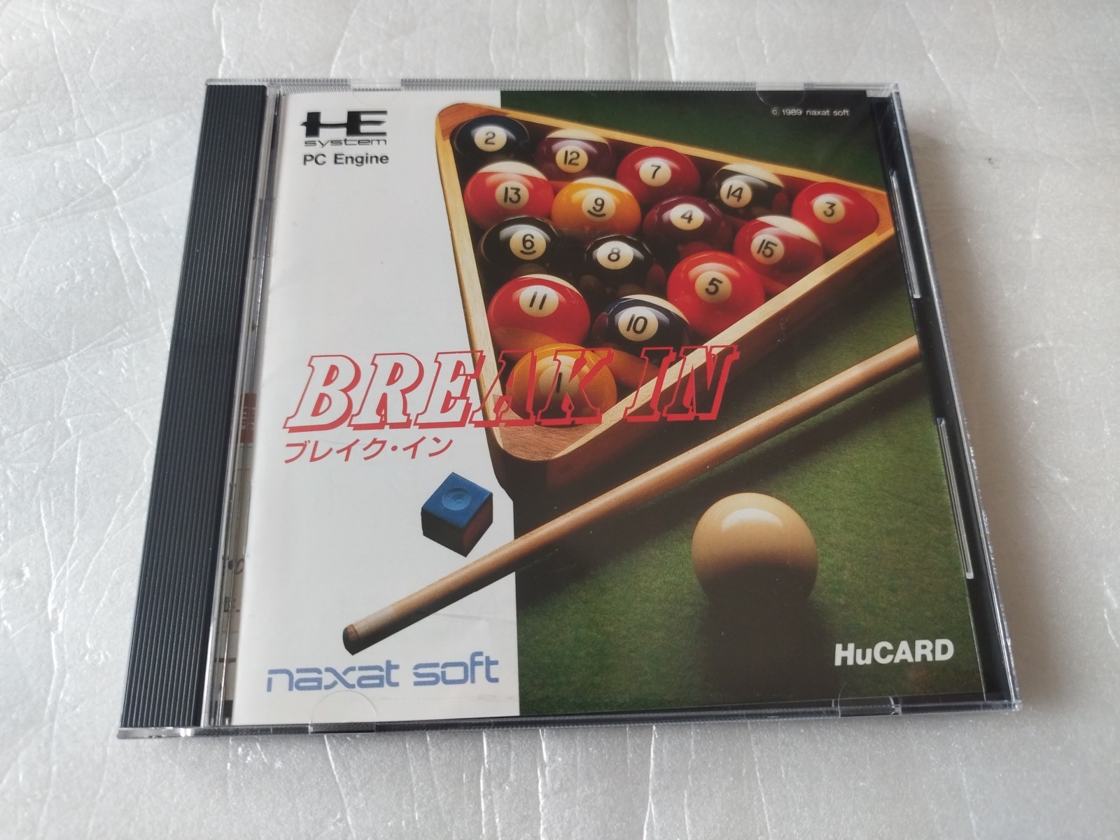 『ブレイク・イン』は1989年にナグザットから発売された、PCエンジン唯一のビリヤードゲームです。9ボールや四つ球など全6種類のルールが楽しめ、最大4人までの同時プレイにも対応しています。密航者が豪華客船で対決を繰り広げるユニークなモードや、ジャズ調の良質なBGMも魅力の隠れた名作です。